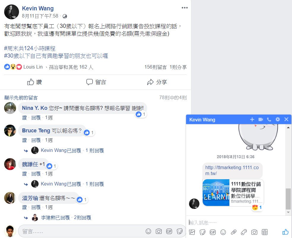 感覺講到後面主題似乎又有點微偏掉,再重新拉回來,還是晚點把標題加上明年目標繼續往下寫XD”,前幾周回學校旁聽老師網路行銷有請業師來上夜間部的課程,課後學弟洋洋灑灑的寫得比我這篇還多的文字,簡單來說述說了,去年受到Gina老師數位行銷的啟蒙,目前也在廣告投放公司實習,朝著這個方向努力著。